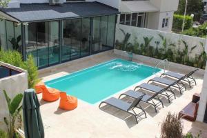 Lara Smart Aparts v Antalyi nabízí přímý vstup na soukromou pláž a sezónní venkovní bazén, čímž spojuje pobřežní pohodlí s možnostmi odpočinku. Nachází se pouhé 4 km od letiště Antalya a zajišťuje snadný přístup k Hadriánovým vratům a Hodinové věži Antalya, které jsou vzdálené přibližně 15 km.
